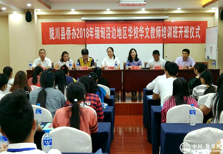 2018年7月26日上午,陇川县第五期华校华文教师培训班开班仪式在陇川县翠之魂大酒店酒店会议厅举行。来自缅甸洋人街、八莫、抹港、蛮稳几、七英里中兴、公乐威远等地区6所侨校的50名华文教师参加了开班仪式。县委常委、统战部部长白珊珊,县政协副主席普丽,县侨联主席、侨办主任俸云丽及陇川县政协民侨委、县外事办、县职业高级中学、县教科中心的相关领导出席开班仪式。