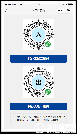 3、确定完成提示:“认证成功,刷新页面下载二维码”,系统会自动跳转二维码页面。如果没有跳转手动点击确定按钮,即可转到入口和出口二维码页面。点击保存二维码,把二维码打印出来分别粘贴至入口和出口。