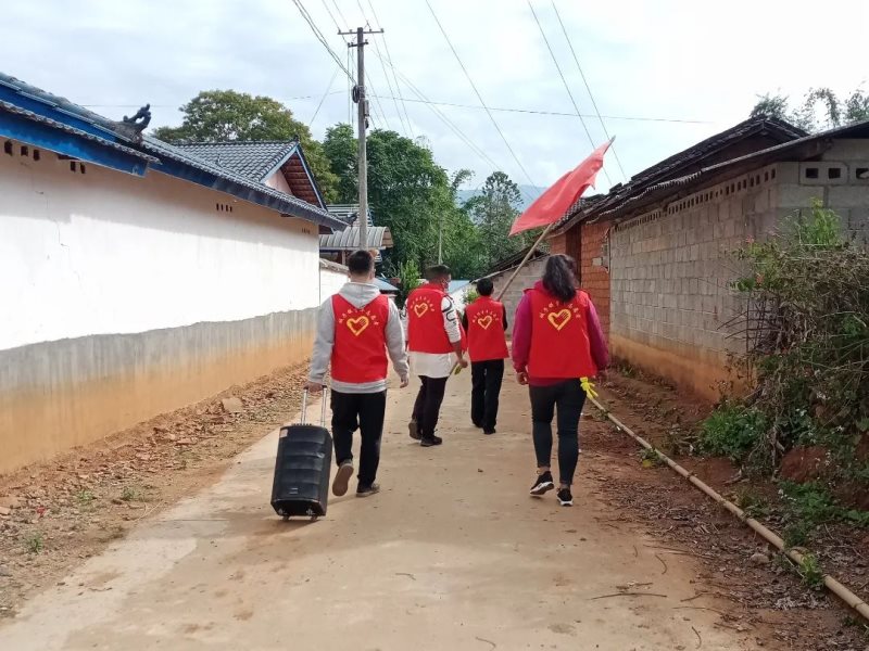 “喂、喂、喂,在家吃着饭的、喂着猪的,歇一哈噶,听我啰嗦两句,大家也晓得咯,这个疫情咋是老火呢,这久么各干各家的活,各人回各人的家,各家睡各家的房,各家吃各家的饭,出门戴好口罩,勤洗手,常通风……”这是连日来,大喇叭里的村主任操碎了心,在各小组广播里忙坏了,同时也在流动“小喇叭”的方言宣传声中不绝于耳。新寨村志愿者们手持移动小喇叭边巡逻边播放,将疫情防控知识输送到每个村小组,打通疫情防控宣传的“最后一公里”。