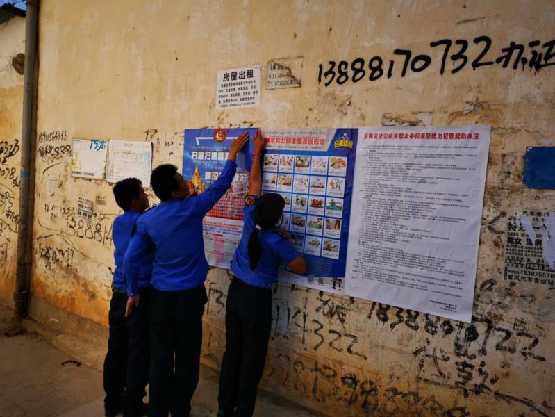 为深入推进陇川县扫黑除恶专项行动宣传工作,使陇川县章凤镇城区范围内公共区域、建筑外侧、绿化树木和市政公用设施等区域,涉黑涉恶治安乱点整治和行业明显提升,进一步净化城市管理环境。全面贯彻落实中共中央、国务院《关于开展扫黑除恶专项斗争的通知》,按照陇川县扫黑除恶专项斗争领导办公室的部署要求,县综合执法局加大对章凤镇城区范围内的公共区域、建筑外侧、绿化树木、市政设施等区域,张贴扫黑除恶的宣传标语和宣传画像,向广大市民开展扫黑除恶专项斗争宣传工作,使广大市民真正认识“黑恶势力犯罪团伙”的性质,黑恶势力的存在,对国家、社会、人民群众的危害极大。