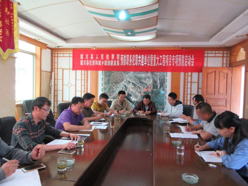 3月27日下午,县人民检察院、县住建局在县住建局二楼会议室召开预防职务犯罪共建单位暨重大工程项目专项预防启动会。县人民检察院何学用检察长、张建华副检察长、预防职务犯罪科尹青霞科长,县住建局领导班子成员及各股室负责人参加会议。
