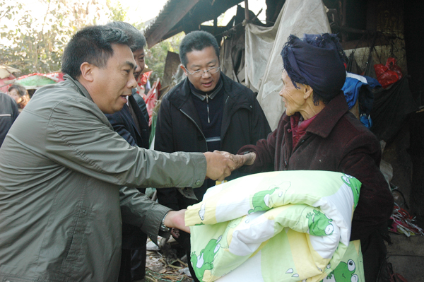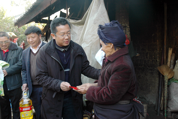 在章凤镇老街子社区民心小区,慰问组一行亲切慰问了村两委、村民小组干部,并与他们亲切交谈,详细了解他们的工作情况。老街子社区书记、主任李德顺这样对慰问组说道:“得知县里面从今年起,每个村(居)委会安排2万元的公务费,村(居)委会领导每年按1200元安排工作绩效奖金。这是对我们基层干部极大的鼓舞,我们将尽自己最大的力做好本职工作。”李正环要求村干部要发挥先锋模范作用,不断提高自己,更好地支持政府工作,在社会发展和经济建设中作出更大努力和贡献。