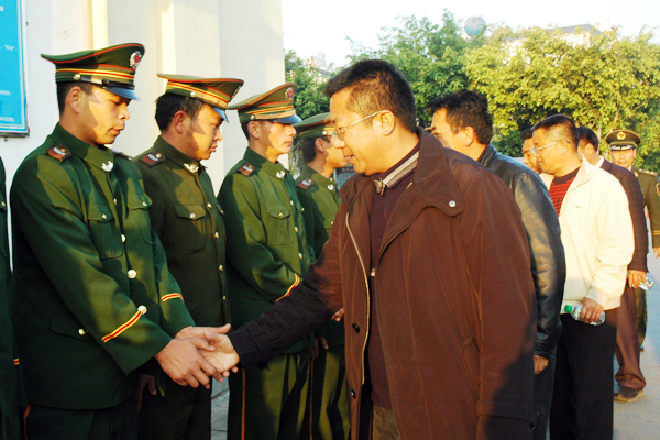在77332部队74分队、章凤边境检查站、消防大队,李正环一行为驻军部门和武警官兵们送上了慰问金和挂历等慰问品。李正环在讲话中,代表县委、县人大、县政府、县政协和全县人民,向驻军和武警部队官兵致以节日的问候,感谢部队官兵在过去的一年中为国防安全和边疆的经济建设、社会稳定、民族团结所做的贡献,希望他们在新的一年中再接再厉取得更大的成绩。同时,各级地方党委、政府要一如既往地支持部队现代化建设,深入开展拥军工作,围绕部队官兵所关心的热点难点问题,继续做好军转干部和退役士兵安置、随军家属就业、子女就学等工作,急部队之所急,想官兵之所想,解除官兵们的后顾之忧。