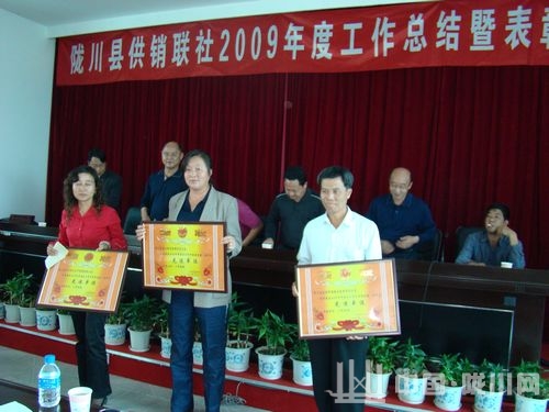 会上,县供销联社理事会主任杨涛同志全面回顾了2009年所开展的工作情况,并对2010年的工作作了安排。杨主任的总结内容全面、客观,统领性强,工作安排思路清晰,有较强的前瞻性和可操作性;张灿林副主任宣读了《陇川县供销联社关于表彰2009年度先进单位优秀工作者的名单》文件,县领导向先进单位和优秀个人颁奖,并号召全体人员向先进单位和优秀工作者学习。会上还传达了