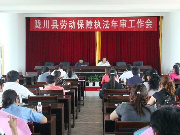 为进一步确保劳动保障法律法规的贯彻执行,不断规范劳动力市场秩序,切实维护用人单位和劳动者双方合法权益,积极围绕“保民生、保稳定、保发展”这一主题,近日,陇川县2010年劳动保障执法年审工作会议在佳佳乐大酒店三楼会议室召开。全县各社会团体、企业及各类用人单位负责人共计100余人参加了会议。