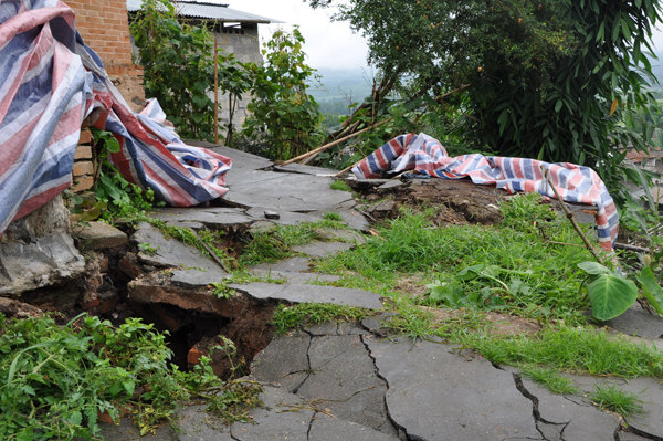 据了解,滑坡是由于近日我县降雨不断,路面渗水造成。在现场,记者看到滑坡上方路面存在不同程度裂缝,部分土石已滑落在坡下方住户门前,给群众生命财产安全造成了威胁。