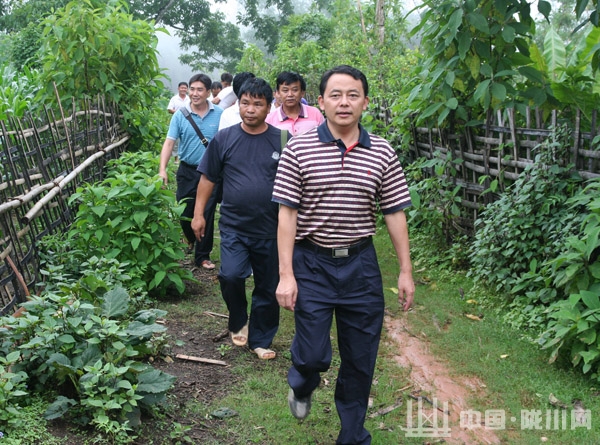 杨书记一行先后深入邦中村委会崩线村、邦中村、尹冒村等地看望慰问了基层贫困老党员。在崩线村贫困党员孔勒约家,杨书记与孔勒约促膝交谈,详细询问了解了他的身体、收入和子女情况。当了解到孔勒约作为一位残疾老党员,身残志不残,充分发扬共产党员的先锋模范作用,积极发展生产,改善生活,他响应县委、县政府的号召,发展特色产业,种植了200多棵核桃,其中有40多颗已进挂果。他不仅自己勤劳致富,还重视子女的教育,在生活条件十分困难的情况下,仍将六个孩子抚养成人,今年还准备建盖新房。杨书记非常高兴,他说:“从孔勒约的身上,我们看到了身残志坚、永不放弃的高尚品格,广大党员干部要认真学习这种精神,用这种精神和力量投入到全县各项事业中,推动陇川经济社会发展。”他鼓励孔勒约继续发挥先锋模范作用,带领群众搞好生产,在各级党委、政府的支持帮助下搞好产业发展,不断壮大核桃产业,扩大规模,增加收入。