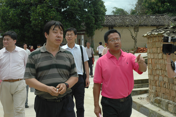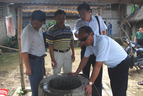 沿着新修的水泥村内道路,在地方少数民族的夹道欢迎中调研组一行来到了景罕镇芒胆村芒胆村民小组,该村2009年被列为“兴边富民示范村”建设项目以来,共投入资金65万元,其中上级补助50万元、群众自筹15万元,实施村内道路硬化、人畜饮水、文化室、沼气、养猪、种植香料烟6个项目。通过项目建设,芒胆村民小组村村容村貌及群众生活水平明显改善。调研组的到来得到了当地群众的热情欢迎,并对长期关心和支持的上级领导和部门表示了真挚感谢,在对致富能手廖小软家参观时,调研组一行对廖小软运用酿酒的酒糟喂猪,又将猪排泄物用于生产沼气,再将沼气运用到日常生活的循环发展模式给予了充分肯定,并希望继续做好运用科技走循环经济发展道路的技术推广工作。