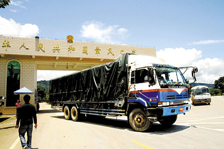 图为正从章凤口岸入境的缅甸货车。(朱边勇 摄影报道)