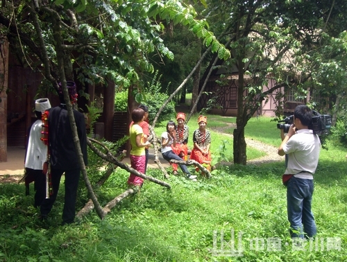 在陇川拍摄期间,福建电视台拍摄组一行分别深入到章凤广山景颇生态村、勐约广瓦村小组和景颇族绿叶宴农家乐,对景颇族银泡舞、双刀舞、绿叶宴制作、吐良乐器制作及绿叶传情等内容进行拍摄,独特的景颇民居、乐器、民族风情、民族美食、民族服饰深深吸引了摄制组每一位成员,通过精心安排策划,摄制组通过嘉宾现场参与体验、制作、品尝等方式,亲身感受了每一个拍摄内容。坚辛疲劳且周而复始的拍摄,让每一个群众演员和嘉宾疲惫不堪,但面对镜头个个都聚精会神、精神饱满,按照编导的要求认真对待,专心参与拍摄,通过全体人员的密切配合和努力,顺利完成了预定的全部拍摄内容。