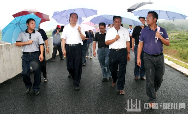 冒着瓢泼大雨,调研组一行来到麻栗坝水库大型灌渠建设区,实地查看了麻栗坝水库建设情况。孔垂柱站在坚实的大坝上:大型主体工程已经建设完毕,但还有灌渠工程建设,党委政府要加强监督,要根据实地情况建设,加强管理,主动和群众沟通;要多参加调研,多到实地查看,不能光看图纸就建设,这是对群众不负责任,我们不能浪费纳税人的钱;水库规划建设期间,要考虑发挥水库最大功能,真正让群众受益。