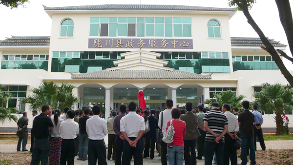 经过一个多月紧张施工和装修,陇川县政务服务中心于9月29日正式投入使用。整个中心建筑面积1050平方米,共有两层办事大厅,全县36个单位和部门在办事大厅设置18个服务窗口,可为群众提供96项行政许可服务。此举是陇川县着力构建州、县、乡、村、组五级为民服务体系的具体措施,是推进政务公开、转变政府职能、建设人民满意政府的有效形式,是营造优质发展软环境、加快“桥头堡”黄金口岸建设的举措。