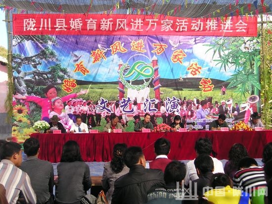 会上,户撒乡阙永芳乡长从三个方面对开展婚育新风进万家活动情况作了汇报,芒炳村支书石老细介绍了芒旦村民小组开展婚育新风进万家活动的基本情况。副县长张福鸾说:一是全面总结了近年来婚姻育新风进万家活动取得的成效和经验;二是进一步明确新形势下婚育新凤进万家活动的总体思路和主要任务;三是切实加强对婚育新风进万家活动的组织领导。张副县长要求:必须在“进”字上做文章,在 “实”字上下功夫,重实干、出实招、求实效,让新观念、新风尚真正走进千家万户。要坚持从实际出发,大力弘扬求真务实作风,把各项任务要求细化分解为具体项目和可操作性措施,项项抓好落实。要建立科学有效的绩效评估机制和 “以奖代投”的激励机制,以进家入户、人脑入心来评价活动效果,坚决反对形式主义,不做表面文章、形象工程。要继续发挥典型的示范带动作用,积极推广成功经验,总结提升活动模式,培育和打造一批具有当地特色、符合时代要求、享有广泛社会影响力和美誉度的品牌活动,实现一乡一品牌,一个成员单位一亮点的活动效应,带动和引领婚育新风进万家活动走向深入。有声有色的文艺表演中还进行了“婚育新风有奖知识问答”,现场观众抢答激烈,活动步步进入高潮。为全县深入开展婚育新风进万家活动开了好头。