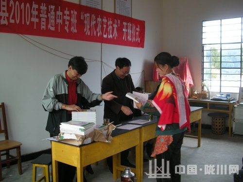 陇川县2010年秋季普通中专班招生50人,录取45人,设现代农艺技术专业教学班。开班仪式上,县农广校为学生颁发了省农广校统一印制、省招生考试院录取盖章的《录取通知书》,分发了本学期教学用书及一些学习资料。开班仪式邀请了州农广校、当地教育部门领导及村委会支书、主任参加,各级领导作了动员讲话,并就普通中专班办学情况、学生来源、办学模式、学籍管理、学生学习方法方式作了详细的传达和讲解,同时对学生及班主任提出希望和要求。