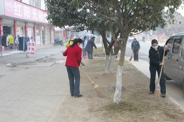 在三象北路,县政府办干部职工手拿清洁工具,发扬不怕苦,不怕累,不怕脏的精神,认真清理道路垃圾卫生死角,及时处理垃圾。县政府办公室以实际行动走上街头开展清扫工作,给全县各单位作出了表率。进一步改善我县城市环境卫生面貌,提高群众卫生防病意识和自我保护能力,为广大人民群众营造一个整洁优美的工作、社会环境和祥和、喜庆的节日气氛。