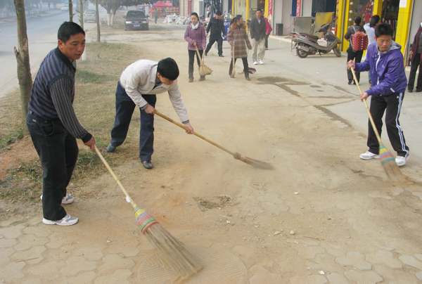 为喜迎春节,欢度2011年陇川目瑙纵歌节,促陇川城市文明卫生建设,1月30日上午,县政府办组织全体干部职工自带清洁工具,走上街头,来到三象北路清扫道路卫生,以自己实际行动号召全县人民积极投身到创建省级卫生县城活动中来,以整洁有序的县城面貌迎接即将举办的2011年目瑙纵歌节。