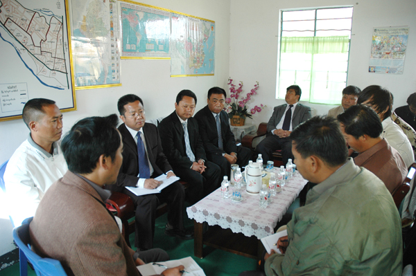 会上,县长李正环阐述了“章八”公路,在发展双边经贸来往,深化各领域的合作上发挥了积极作用,促进了双方的交流往来。 “章八”公路是缅甸通往中国西南的第一条道路,是我国陆路连接印度洋贸易和能源资源的重要通道。2004年,陇川县举全县之力,将章凤至缅甸八莫的公路改建为弹石路,口岸贸易逐年攀升,2010年章凤口岸进出口贸易总值达15.8亿元,是2005年的6.65倍;进出口货运量17.36万吨,是2005年的4.76倍。但由于该路地处山区,坡陡弯急,缺乏必要的道路维护,在一定程度上限制和影响了双边贸易和双方交流往来的深入发展。为此,李正环就“章八”公路提出三点希望,一是希望多温公司在加快原有老路修善工作的同时,双方能积极向上反映选择新的路线修建 “章八”公路,如选择新的线路修建“章八”公路,一方面运距段、运时少、运价低的明显优势,另外在道路的建设资金上双方也可积极向上争取加快道路的建设;二是希望在道路的修建上要尽可能的提升道路的通行标准;三是希望双方能进一步加强合作,互通信息。最后李县长代表县委、县政府向多温公司一行表示了真挚问候,并邀请多温公司领导能够来陇访问,进一步加强双方的交流合作。