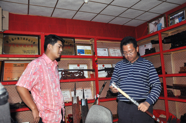 在润香精米加工厂和娄四东户撒刀具加工点,李县长了解了户撒刀和精米加工流程、生产加工能力、产品销售及今后打算。他说,阿昌族户撒刀锻制工艺是我国非物质文化遗产之一,发展壮大户撒刀产业是我县打造民族文化品牌和推动经济发展的一项举措,户撒刀的制作和精米加工要不断扩大生产经营,走企业化、规模化、规范化的路子,努力打造龙头企业,做好品牌培育;要突破家庭式经营模式,处理好知识产权的保护和发扬,既要努力保护好传统工艺的传承,也要使户撒刀具商品化、市场化,走加工、销售、展示、表演一体化的发展路子。精米加工要把关好从种子、种植到加工的各个环节,积极探索发展生态米,建立生态米实验区,提升品质,打造品牌精米。加工企业要与农户互惠互利,要不断更新经营管理理念,提高产品产量质量,探索开发关联产品,在竞争日益激烈的市场中寻求更好更大的发展。