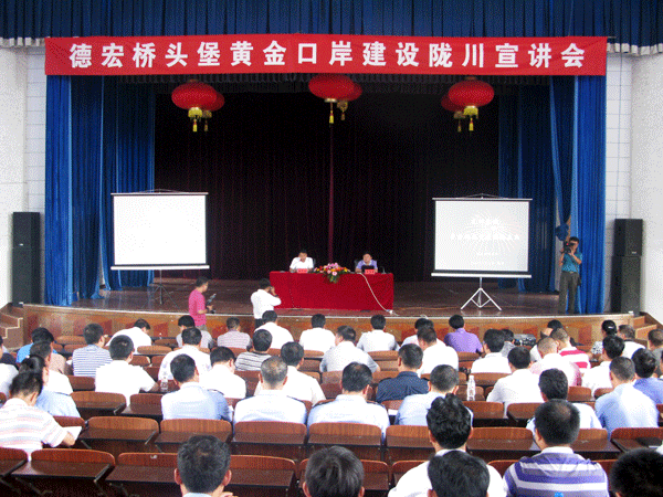 宣讲结束后,州桥堡办在县政府三楼会议室听取了陇川县政府桥头堡黄金口岸建设工作汇报。李益民代表县委、县政府向州桥堡办详细汇报了陇川县在桥头堡口岸建设中的发展思路、发展重点、产业布局、采取的主要工作措施及下一步工作打算。全洪涛对陇川在桥头堡建设中所做的工作给予了充分肯定,对陇川县下一阶段的“桥头堡”建设,全洪涛要求,一是要加强学习,提高认识,深入贯彻落实桥头堡建设有关文件和会议精神。各部门要认真学习研究桥头堡建设有关文件精神和会议精神,深入分析政策措施的内涵和实质、基本要求,进一步明确陇川在桥头堡黄金口岸建设中的地位和应发挥的作用。二是要抢抓机遇,见势发展,强力推进重大项目实施。要抓住西部大开发、桥头堡黄金口岸等重大战略机遇,依托瑞丽重点开发试验区建设,认真梳理陇川在桥头堡黄金口岸建设中的发展思路、发展重点和产业布局,强力推进重大项目的建设。三是要加大组织宣传,营造氛围,为桥头堡建设营造和谐良好的外部环境。利用新闻媒体、会议传达、送政策上门等方式,在全县营造桥头堡黄金口岸建设和谐氛围,使各部门在口岸建设和通关便利化等方面形成共识与合力。