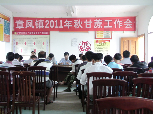 为加快推进“甘蔗提质增效”,巩固和发展甘蔗甘蔗产业,8月5日,章凤镇召开2011年秋甘蔗种植管理工作会,会议通报了全县甘蔗种植情况,并对当前秋甘蔗种植技术措施,病虫害防治等做了讲解。2011年章凤镇秋甘蔗讲话种植面积2650亩,主要安排落实在户弄村、芒弄村、迭撒村三个村委会,秋甘蔗种植奖励措施也将参照去年的补助政策实行。会议要求各村小组工作人员技术员进村入户早宣传、早部署、早落实,抓节令,促效益,能种甘蔗的田块不在栽种其他作物,确保在9月30前全部完成秋甘蔗种植任务。