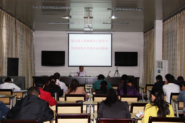 10月19日,县政府办公室召开干部职工大会,认真学习贯彻州第六次党代会精神。会议由县政府办党总支书记杨辉龙主持。