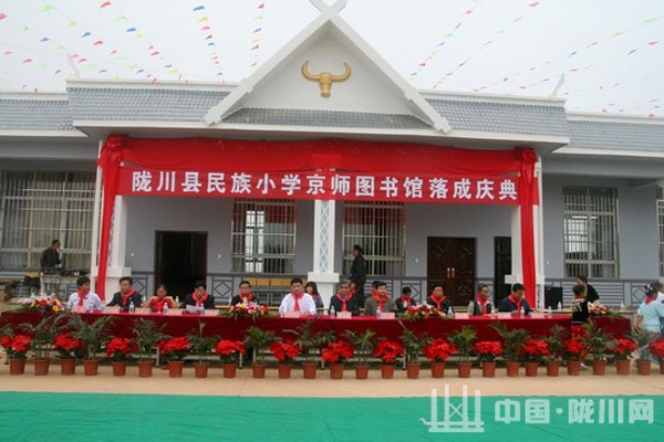 傅占武先生对陇川民族小学京师图书馆的建成表示祝贺。他表示,支持边疆教育事业是北师大出版集团义不容辞的责任,他们将一如既往地继续为边疆教育事业贡献力量。随后,傅占武先生和李兴庄副县长共同为图书馆揭牌,并与参加庆典活动的领导和民小全体师生一道观看了该校学生自编自演的文艺节目。