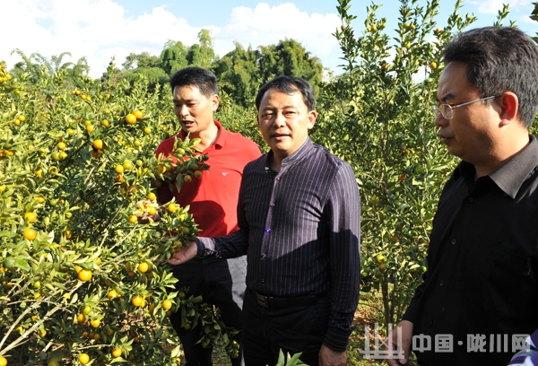 在麻达村民小组金桔基地调研