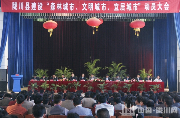 11月18日, 陇川县组织召开建设“森林城市、文明城市、宜居城市”动员大会。在家的县四班子领导,县直单位副科级以上干部,各乡镇主要领导,陇川农场主要领导,中央、省、州驻陇各单位主要领导参加会议。
