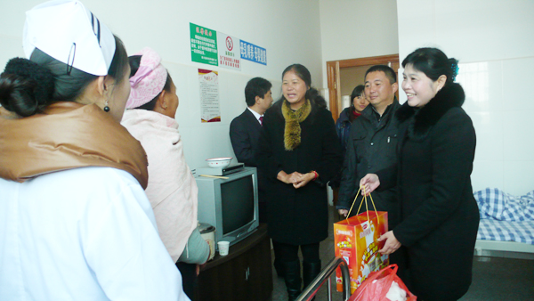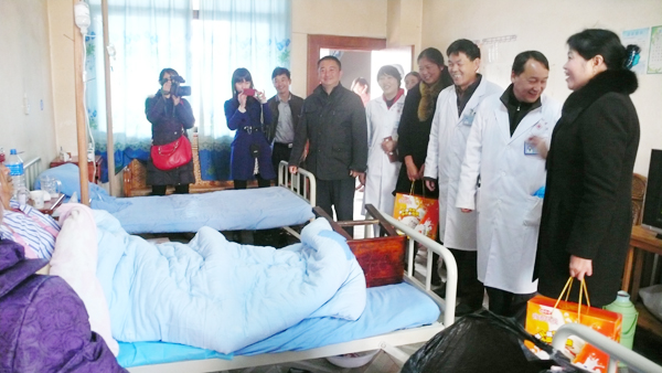 由于工作的需要不少临床一线的医护技人员、后勤员工等在新春佳节也不能回家与家人团聚,一直坚守在工作的最前线,为春节期间仍需留院的患者及门诊病人服务。 “新年好!”“大家辛苦了!”“给大家拜年了!”……领导们一声声亲切问候,让大家感到格外温暖,处处洋溢着新年的喜庆气氛。每到一处,张福鸾、廖晓腊都和值班人员、住院病人们亲切握手,问寒问暖,为他们送去了慰问品和新年的美好祝福,并代表县委、县政府向节日期间坚守岗位工作人员表示亲切的慰问,希望他们在各自的岗位上勤奋工作,为医院的发展做出更大的贡献。值班人员纷纷表示,感谢县领导的关爱,不辜负领导的厚望,坚守好岗位,确保医院春节期间工作的正常运转。