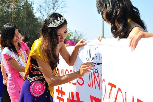 佳丽们先后参观了景颇族英雄穆然早乐东广场、陇川森林公园。陽光有意,綠水含情,盛裝綻開如花笑靨,佳麗们漫步在林茂花艷、環境秀美的森林公園内都被森林公园的美景吸引,纷纷摆出各種優美的姿態配合各媒體記者的鏡頭。