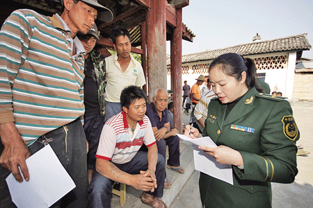 民警向群众广泛征求意见。