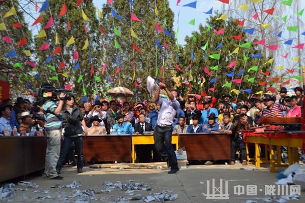 开幕式上,省州县领导为阿昌族传统吉祥物青龙白象挂红。县委书记杨世庄对各级领导和嘉宾的到来表示热烈欢迎,同时强调:过去的一年,在州委州政府的坚强领导下,县委县政府团结带领全县各族人民,以科学发展观为指导,紧紧围绕建设“中缅陆水联运前沿港”、“云南糖业第一强县”和“生态陇川绿色家园”三大目标,坚持“敬畏历史、科学发展、执政为民”的执政理念和“务实”的工作理念;坚持“产业立县、项目支撑、科教优先、和谐发展”的工作主题:坚持从陇川实际出发,依托优势资源,做大做强优势产业;坚持在产业发展中突出重点,把有限的资源配置到优势产业中,咬注重点不放松,实现了十二五“开门红”。