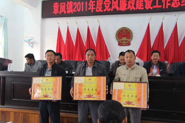 会上,镇党委书记张树保充分肯定了2011年的党风廉政建设工作,他说:过去的一年,镇党委围绕中心,服务大局,突出教育、制度、监督、改革、纠风、惩处等重点,认真抓好各项工作落实。一是把推动党委政府重大决策部署的贯彻落实作为首要任务。加强对换届纪律、盈江“3·10”抗震救灾和灾后恢复重建、重点工程建设项目等工作的监督检查;二是加强对重点领域突出问题的专项治理;三是深入推进为民服务工作,继续完善“三级为民服务”体系建设,构建了“集中办”和流动服务相结合的基层便民利民服务模式,进一步提高了为民服务质量;四是创新开展党务公开工作。各级党组织围绕事、人、财,加大权力运行的公开、透明,确保群众对权利运行的知情权、参与权、监督权;五是全力推进廉政文化示范点建设,领导干部廉政教育等工作迈出新步伐。2011年镇纪委获得全州纪检监察系统先进单位,镇党委荣获全县推进惩防体系建设和落实党风廉政建设责任制“优秀单位”荣誉称号。