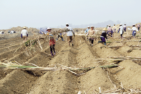 据了解,“十二五”期间,陇川县委、县政府提出打造“云南糖业第一强县”目标,规划中的千亩“四化”甘蔗园,涉及章凤镇户弄村水田面积1325亩,包括姐坎、费顺哈、吕相3个村民小组,共210户。为抓抢节令,完成栽种任务,章凤镇近日组成工作组,抽调工作人员,由3名副职领导率队,深入一线区指挥抢种工作,全镇7个村群众自发组织互帮互助组,共同攻克冬春甘蔗栽种大关。