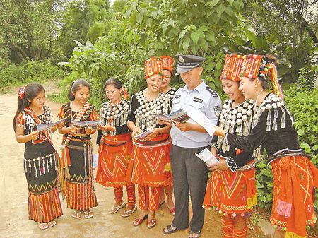 为给前来办理业务的群众提供方便、快捷、周到的服务,树立公安机关窗口服务的良好形象,三象派出所借助前期编制的民族语言版《户口办证指南》,积极推进“三访三评”暨“四群教育”活动,鼓励民警学习主体少数民族常用语,了解少数民族风俗习惯,将派出所工作与民族工作有机结合起来,促进警民亲切感,认同感;将少数民族民警调至户籍室、社区中队等窗口部门,用少数民族群众看得懂、听得懂的文字和语言进行沟通交流,增进和谐;鼓励社区民警采取“拉家常”等方式,用通俗易懂的语言,与群众沟通,向他们讲解法律、法规及户籍政策,不断拉近与少数群众之间的距离,增进感情;将民族语言版《户口办证指南》摆放在户籍室及各中队,方便群众了解相关政策。