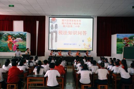 今年4月,是全国第21个税收宣传月。连日来,陇川县国家税务局、陇川县地方税务局围绕“税收·发展·民生”的宣传主题走进陇川县第二小学开展“税法知识进校园”活动。