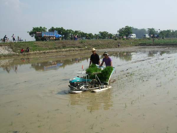 在演示会上,县农业局领导作动员讲话,指出:一是水稻机械育插秧是一门先进的技术,它充分利用高性能插秧机的技术优势,采用中小苗带土移栽、浅栽和宽行窄株的移栽方式,有利于早播早栽、规范化种植、返青快、低节位分蘖多、保证合理的群体结构,具有降低生产成本、减轻劳动强度、提高生产效率和增产增收的显著效果,具有很好的发展全景;二是通过观看现场演示,要求参会人员把水稻机械育插秧技术这一信息广泛向群众宣传;三是要求农机大户、种粮大户回去后认真进行探讨,尝试发展机械育插秧规模化经营和合作化经营;四是在发展机械育插秧技术的过程中,要善于思考总结,做到农机农艺有效结合。