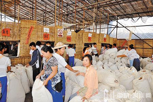 走进收购站,里面的收购场景更是热火朝天,卸烟、评级、称重,收购工作紧张而有条不紊。烟农们则是喜悦中带有少许的焦躁,丰收的喜悦实在让他们等不及了。来自章凤镇拉勐村弄秀村民小组的金老双刚交完烟,他告诉记者,自己今年一共种了2亩红土晒烟,收获烟草428.3公斤,共计8647元,扣除烟草公司预先垫付的农药、化肥费用,还有7000多元的收入。金老双是陇川县2007年发展烟草产业以来的第一批烟农,去年因为冰雹、霜冻等自然灾害,3亩晾晒烟只有2700元的纯收入,但他依然坚持种烟。他说,种烟时间短,收益高。过去种其他作物价格波动大,一亩地一年下来也不过几百块钱,现在种完烟还能收一季水稻,烟叶由企业统一评级、统一定价,预先垫付部分农资,减轻了烟农的负担,也保障了收入。金老双笑着告诉记者,今年因为劳力不足,他只种了2亩烟,明年准备种5亩。