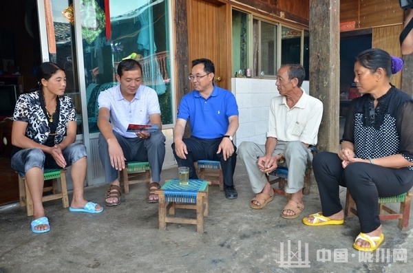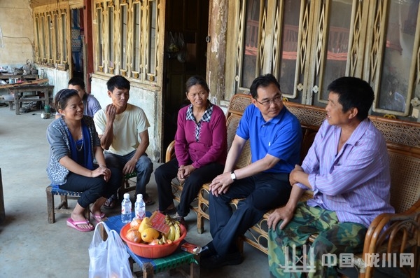 离开杨永强家,唐文祥来到芒炳村芒那下村民小组,看望“四群”挂钩联系户、阿昌族群众刀老准。递上民情联系卡,唐文祥与刀老准父女俩围坐在一起。