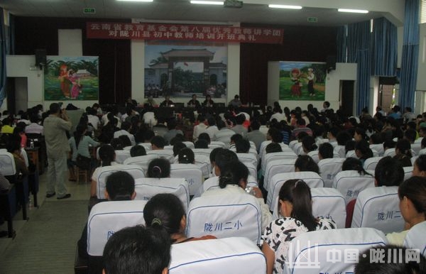 2012年7月21上午,在县二小进行了云南省教育基金会第八届优秀教师讲学团对陇川县初中教师培训开班典礼。陇川县副县长张福鸾出席会议并致欢迎词。云南教育基金会副理事长、云南省教育厅原副厅长、国家督学、讲学团德宏团团长马有良代表讲学团作了热情洋溢的讲话。陇川县教育局局长董保强主持典礼,并要求培训教师以参加这次培训为契机,认真学习,结合工作实情深刻反思,虚心向专家求教,彼此诚心交流。昆明市第三中学特级教师周丽蓉就班级管理做了专题讲座。