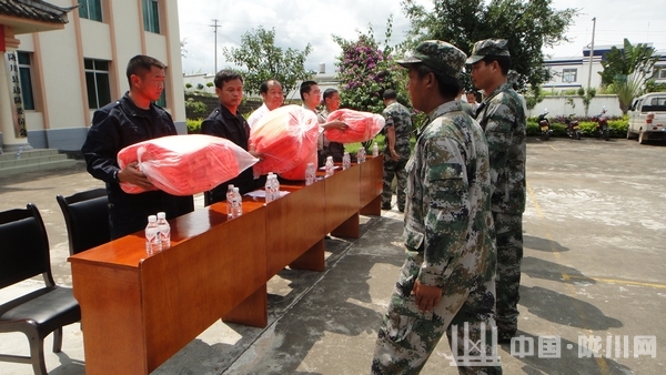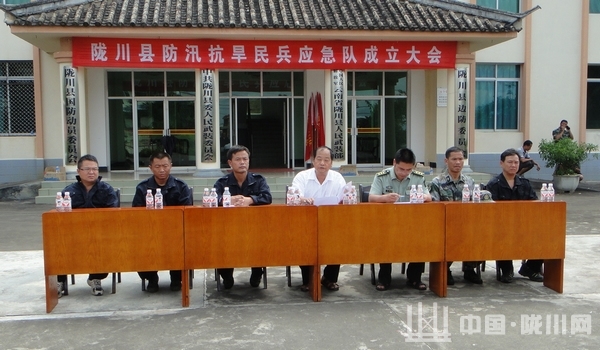 县政府副调研员梁耀昌代表县委、县政府对县防汛抗旱应急队的成立表示祝贺,并作了动员讲话。他说,多年来,我县民兵组织在维护社会稳定中,发挥了带头作用;在经济发展中,发挥了骨干作用;在抢险救灾和重大工程建设中,发挥了突击队作用;为构建和谐陇川作出了突出贡献。并就如何做好民兵应急队工作提了三点意见:一、明确责任,落实任务。民兵应急队领导机构要切实承担起加强队伍建设的责任,统筹安排,精心组织,努力把我县民兵应急队建设成为一支平时能应急、战时能应战的忠诚队伍。县人武部要切实发挥军事部门的职能作用,组织开展好军事训练和应急技能训练,不断提高我县民兵组织的军事技能和应对处理突发事件的能力。各乡镇、各部门要把民兵应急队伍建设工作摆上重要位置,舍得投入人力、财力和物力,以对人民群众利益和生命财产安全高度负责的态度,把民兵应急队伍建设各项工作落到实处。二、要密切配合,协同作战。处理突发应急事件涉及面广,工作复杂,只靠民兵应急队伍自身的力量有时很难完成。各乡镇、各部门一定要树立大局观念、全局意识,不断加强本单位、本部门基干民兵队伍建设,建立健全快速反应机制,提高快速反应能力。进一步加强各部门协同配合、全社会共同参与的处理应急突发事件体系,确保我县社会安全稳定。三、要加强宣传,营造氛围。要充分发挥电视、网络等新闻媒体的作用,大力宣传建立民兵应急队伍的重要意义,大力宣传民兵应急队伍在维护社会稳定、抢险救灾等方面的先进事迹,在全社会营造支持民兵应急工作的浓厚氛围。并希望各级民兵应急队切实承担起责任,发挥应有的作用,不辜负县委、县政府及广大人民群众的希望和重托,为维护我县社会稳定,推动经济社会又好又快发展,构建和谐陇川作出新的更大的贡献。