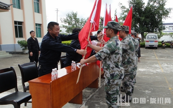 最后,县人武部周海清部长对民兵应急队提出了要求。主席台就座的领导为10支民兵应急队授旗,并发放了抗洪抢险器具。