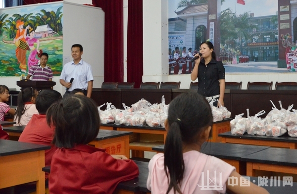 团县委领导转达了社会各界对学生的关爱之情,并鼓励同学们认真学习,长大以后回报社会,成为国家的栋梁之才,最后希望同学们度过一个愉快的中秋。