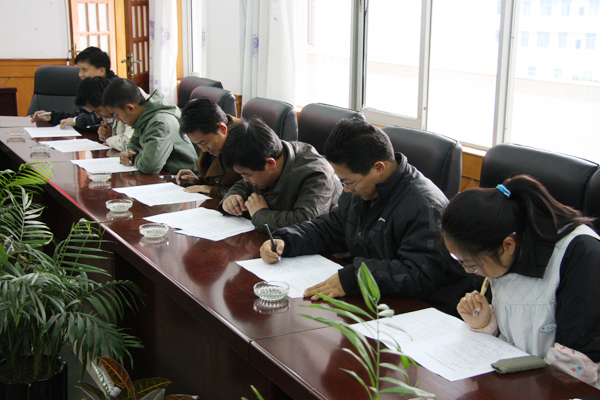 参加考试人员对试卷认真读题,细细作答。