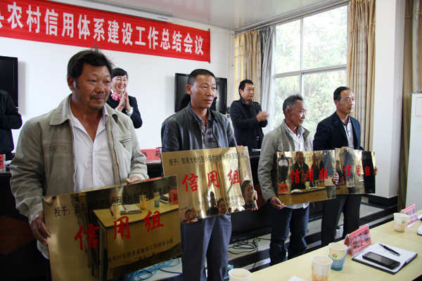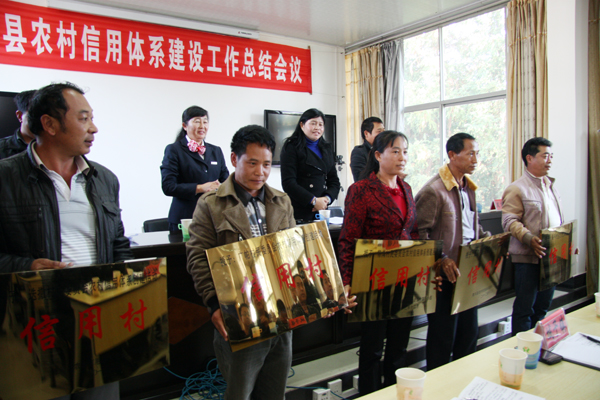 最后,向被评定为“信用村”的5个村委会、评定为“信用组”的60个村民小组授牌。