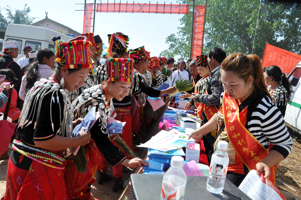 当天,陇川县人口计生局、县计划生育协会、县计划生育技术服务中心和章凤镇、城子镇、景罕镇等三个乡镇计生办人员以群众喜闻乐见的形式,走上摆场,深入群众,在朋生目瑙纵歌摆场设点摆摊进行人口计生工作的宣传。活动现场不仅提供计生政策法规的咨询,还免费发放大量的各种避孕药具,赠送健康知识手册、围裙、纸杯,发放计生家庭奖励扶助、优生优育优教等知识宣传品。场面非常热闹,深受那些身穿节日盛装的景颇族、傣族、阿昌族、傈僳族等育龄群众的喜爱,活动现场吸引了大量过往群众前来了解咨询。此次活动共发放宣传材料6800多份、宣传画2750张,围裙2100条,纸杯600个,避孕药具800余盒。