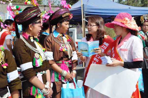 陇川县人口计生局组织县计划生育协会、县计划生育服务中心和户撒乡计生办、服务站共20人在窝罗节场摆摊设点开展计生宣传活动。