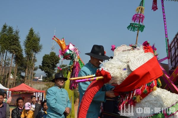 州县乡领导为阿昌族传统吉祥物青龙白象挂红。乡党委书记韩永信对各级领导和嘉宾的到来表示热烈欢迎,并向长期以来关心、支持、帮助民族乡经济社会发展的各级领导、各界人士表示衷心的感谢,同时强调:今后的户撒在县委、县政府的领导下,结合户撒乡实际,巩固农业,提升工业,培育烤烟,发展旅游,重视稳定的五个主题发展目标。团结和带领全乡各族人民努力建设社会主义新农村,共创美好和谐昌乡!