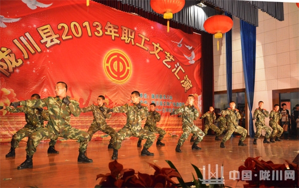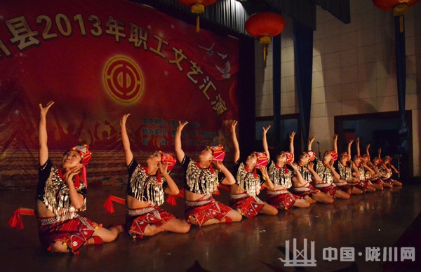 由师韵舞蹈队带来的《报 答》拉开了晚会序幕。晚会演出了《青蓝舞之韵》、《永远的香巴拉》、《风 筝》、《银泡与扇》等十六个优秀舞蹈节目,一个个精彩的文艺作品充分展示了我县广大职工健康、向上、奋发的精神风貌。其中,获得2013年德宏州样样好孔雀舞大赛优秀奖的《晨雀》其惊艳的舞蹈给观众们带来了不一样的视听盛宴;来自武警三支队的《精忠报国》给观众展示了人民子弟兵的戍边卫国的英勇气概和铁血男儿的阳刚之美。