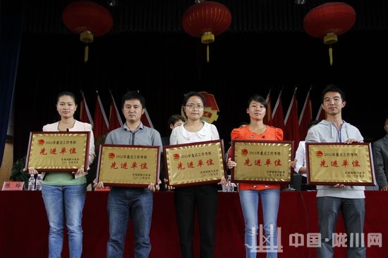会上,张福鸾副县长宣读了《共青团陇川县委关于表彰2012度年团队工作先进集体和个人的决定》,对2012年度团队工作先进集体和个人进行了表彰。来自陇川一中、民族中学的部分同学分别参加了少先队员退队入团仪式和十八岁成人礼仪式。